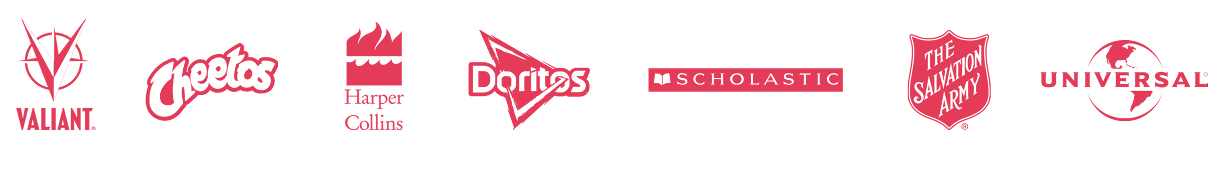 Absolut • Archie Comics • Amazon Publishing • Audible • Avocados From Mexico • Banter • Bell'INVITO Stationers • Cheetos • Cracker Barrel • Dallas Symphony Orchestra • Denton Radio • Doritos • Godiva • Goliath Games • HarperCollins • Hearst Castle • Holy Kombucha • Julie Murphy • Lyft • Macmillan Publishers • The Marketing Arm • MARS • Marvel • NFL • Papa Murphy’s • Penguin Random House • Pinna • Quirk Books • Ruffles • Salvation Army • Scholastic • Science News Magazine • Signet • Simon & Schuster • Sourcebooks • Tostitos • Universal • Valiant Comics